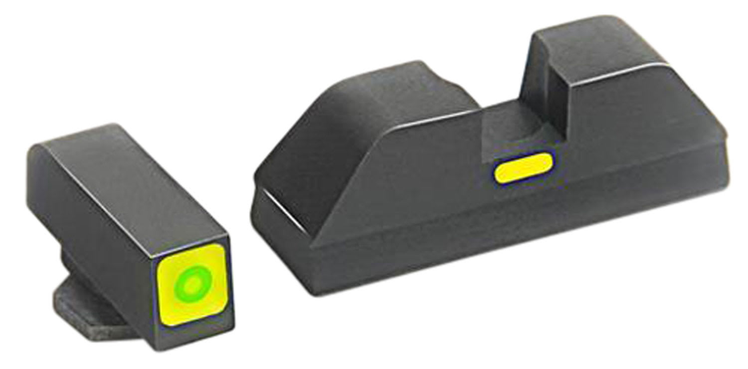 AmeriGlo brings a clear advantage to your shooting experience on and off the range. The CAP (Cover Point of Impact) sight is designed with large, highly visible front and for rapid sight acquisition. This model has a green tritium square with lime green outline front with a square notch flat black rear that has a horizontal Lumi-green line. Compatible with Glock 42/43/43x/48 Gen1-5. Overall rear sight height 0.272".