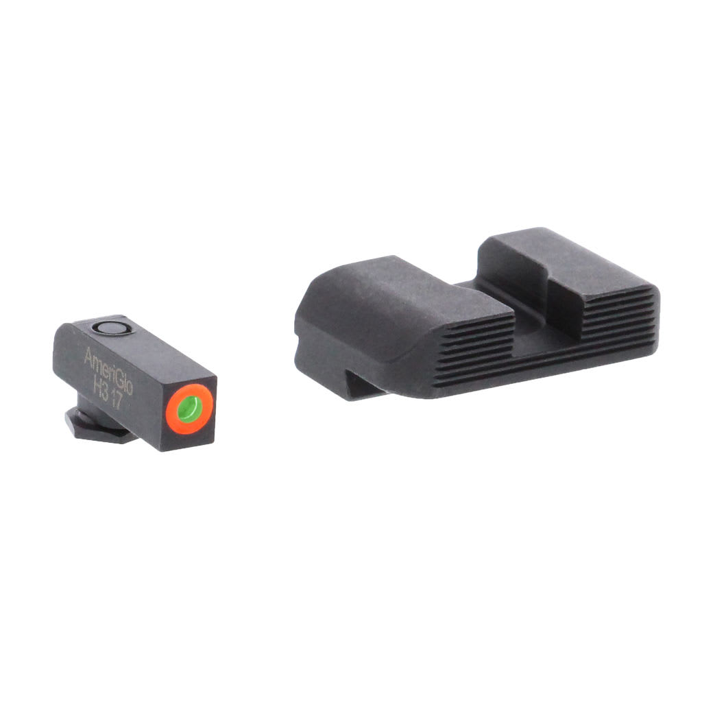 AmeriGlo brings a clear advantage to your shooting experience on and off the range. The Hackathorn Sights/ Protector Sights are designed for quicker front sight acquisition and concentration on the front sight blade. The black, serrated rear sight reduces glare and offers assistance in one-hand slide manipulations, while the front sight offers a tritium illumination and a ProGlo outline in LumiGreen or orange for an enhanced aim point. Ideal for any conceal carry or personal defense weapon. Not compatible with Gen5. Does not fit Glock MOS slide.
