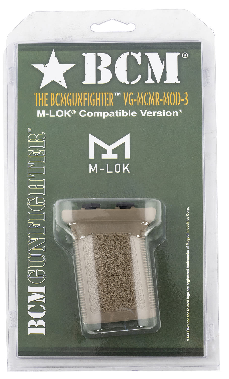 BCM Gunfighter Grip Mod 3 FDE, Vertical Grip, Aggressive Texture, M-LOK