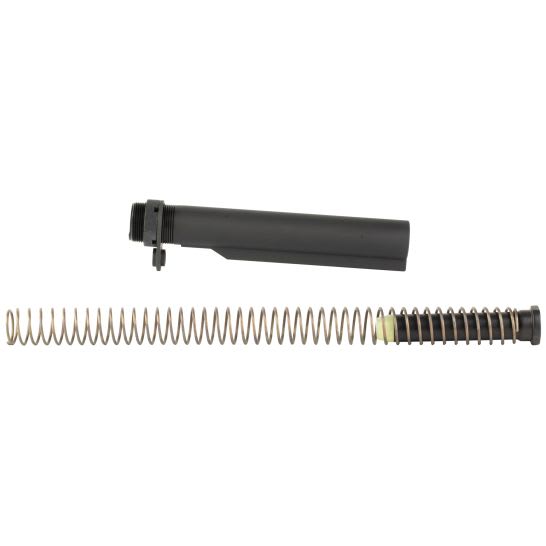 This kit contains all the necessary parts to mount to your Mil-Spec dimension stock assembly to your Mil-Spec lower receiver: MK2 Mod 1; Mil-Spec M16A4 rifle action spring; MK2 Receiver Extension (approximately 3/4in longer than carbine), 7076T6, 8 position, Mil-Spec diameter; Lock Nut (Castle) M4; Receiver QD End Plate (include mount for QD swivel).