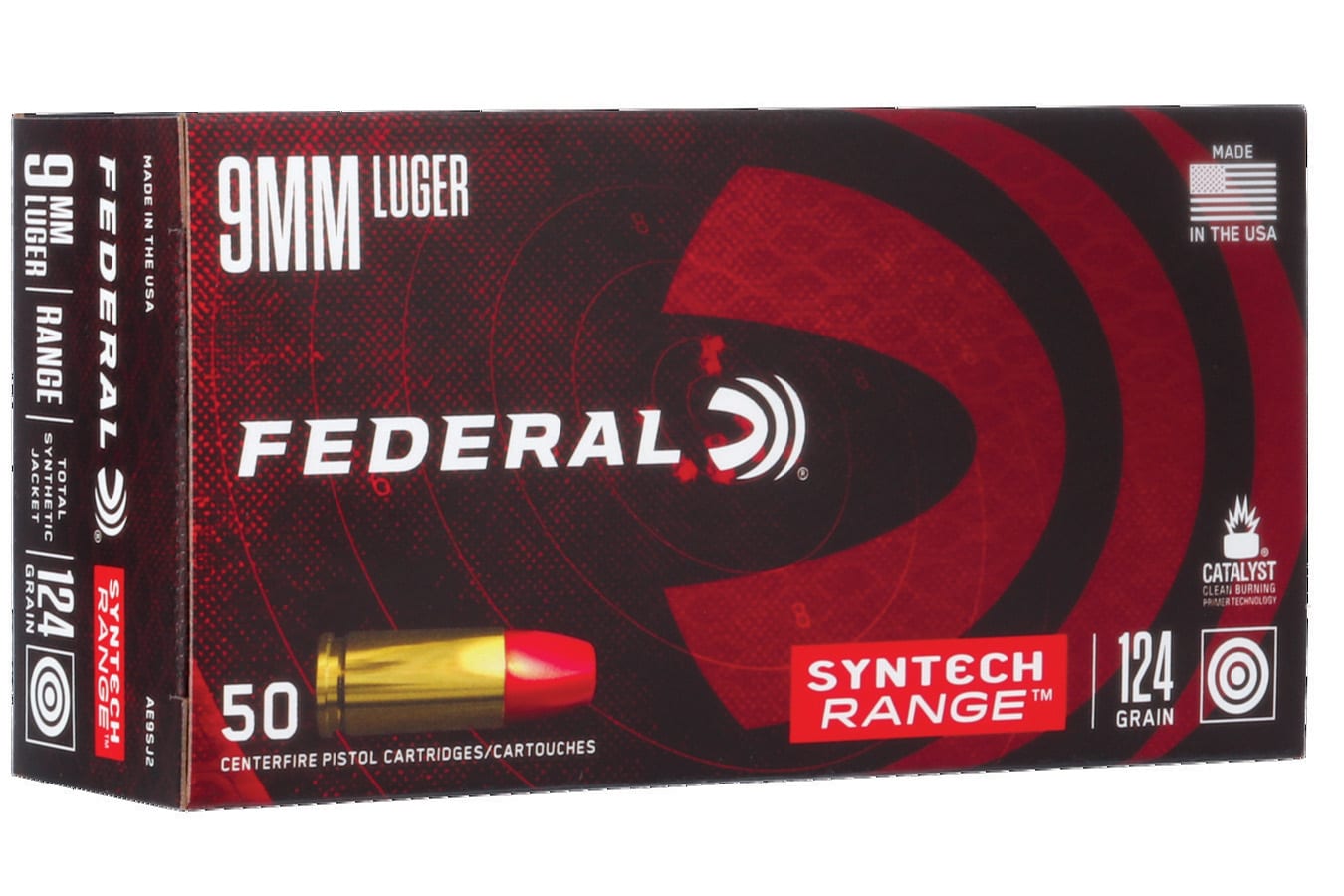 Federal American Eagle 9mm 124 gr, Total Syntech Jacket Flat Nose, 50 Rounds