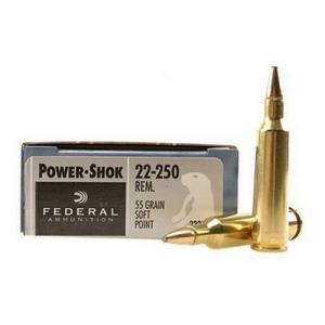 Federal Power-Shok Hunting 22-250 Rem 55 gr Jacketed Soft Point (JSP) 20 Per Box/ 10 Cs