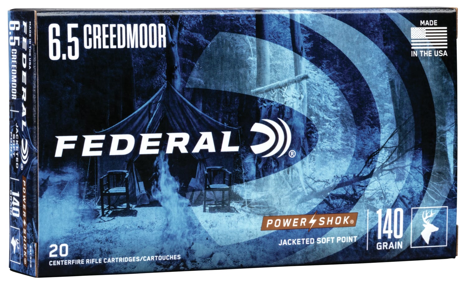 Federal Power-Shok 6.5 Creedmoor 140 gr Jacketed Soft Point, 20 Rounds, Brass