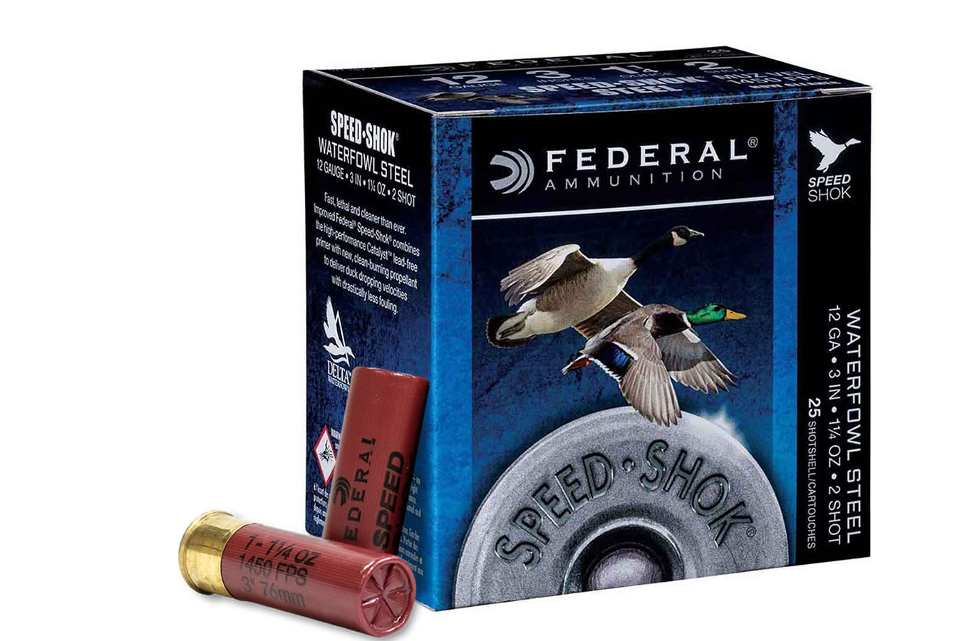 Speed kills ducks and geese. Now it kills even cleaner with redesigned Federal® Speed-Shok®. Its Catalyst™ lead-free primer and fast-burning powder dramatically reduce residue, while its optimized velocities knock birds out of the sky.