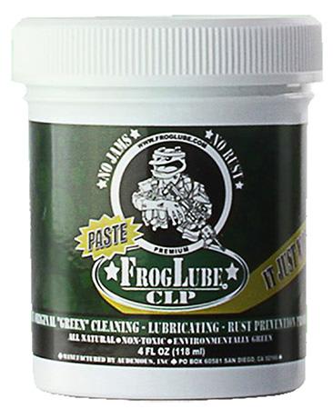 FROGLUBE® is a cutting edge bio-based lubricant made from “USDA Certified Food-Grade”. All ingredients are produced in the USA using a proprietary formula. It is a non-toxic substance that dissolves carbon on contact. It has a heavy specific gravity, which enables it to ‘season’ the metal by absorption deep into the pores. Using FROGLUBE® results in a durable dry slick wax-like surface that reduces friction, eliminates fouling, and destroys rust. FROGLUBE® is safe for plastic, urethane, nylon, and wood. FROGLUBE® will give your weapon many extended years of service.