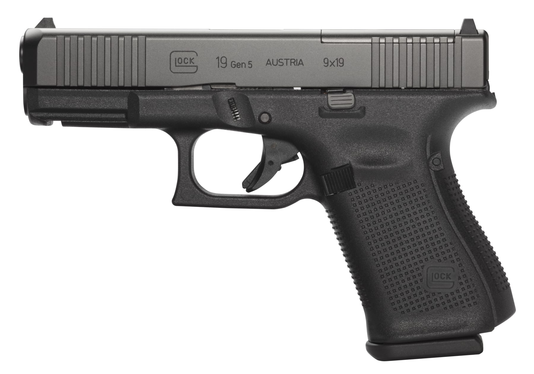 The Glock 19 pistol is ideal for use as a backup weapon or for concealed carry purpose. It features Glock's Safe Action system which provides a consistent trigger pull from the first to the last round. The three automatic independently operating mechanical safeties are built into the fire control system of the pistol. All three safeties disengage sequentially as the trigger is pulled and automatically reengage when the trigger is released. The frame is made of polymer with hardened steel guides. It features an ideal grip angle and low weight. The slide stop lever and the magazine catch are easily operated with the shooting hand. The advanced surface treatment of the slide results in optimal hardness by considerably reducing wear and tear and it makes it corrosion resistant, even when operating in saltwater conditions. The matte surface minimizes light reflection. The barrel is mechanically locked and cold-hammer forged. It also has the same advanced surface treatment as the slide. Its extractor serves as a loaded chamber indicator to comply with the laws of certain states and its position may visually and physically indicate whether there is a cartridge in the chamber of the pistol. The Gen5 model features nDLC surface finish, frame texture, reversible magazine catch, ambidextrous slide stop lever and the GLOCK Modular Backstrap System. This MOS version features a slide that is precision machined to provide a mounting system for popular optic sights. With multiple adapter plates, you can quickly and easily mount miniature red dot sights to the rear of the Gen5 GLOCK slide.