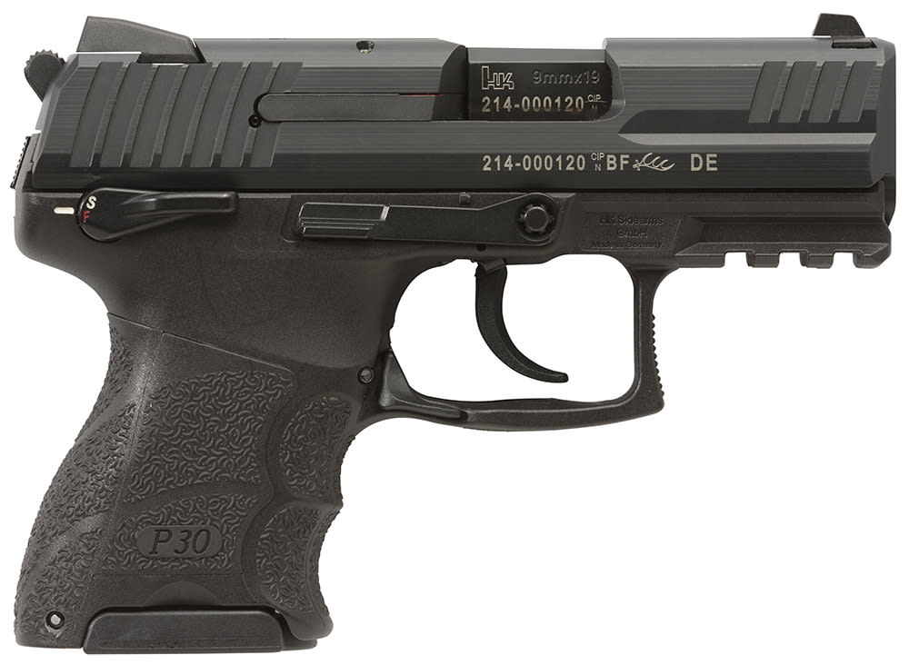 The subcompact model of the renowned P30 handgun, P30SK (SubKompact) series has all of the sought-after characteristics of the larger frame P30 and P30L pistols, but in a more concealable design. The completely adjustable P30 grip feature – consisting of interchangeable backstraps and lateral grip panels – is replicated in the ultra-compact grip frame of the P30SK. This allows the pistol to be easily modified to fit to any individual user. An abbreviated Picatinny rail molded into the front of the frame enables weapon lights, lasers, or other accessories to be easily mounted. Like all P30 pistols, the P30SK features an automatic hammer safety and firing pin safety. Ambidextrous controls include dual slide and magazine release levers. Despite the small size, P30SK subcompacts have excellent weight and balance making them naturally pointable, easy to control, and accurate to shoot. Like all P30 pistols, the P30SK features an automatic hammer safety and firing pin safety. Variant 1 has HK’s enhanced double action only LEM “Law Enforcement Modification” trigger configured with a “light strike V1” setup – requiring approximately 5.4 pounds-force to pull the trigger. This V1 model is supplied with night sights, two backstraps, lateral grip plates, and three 10-round magazines.