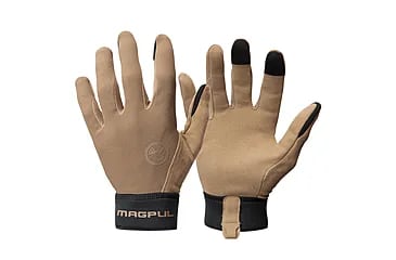 The Magpul Technical Gloves 2.0 offers abrasion protection with maximum dexterity. Fitted with durable synthetic construction, suede-backed thumbs and palm with compression-molded neoprene cuff to provide a second-skin fit. To help you keep your grip when things are slick, we've included a tough, suede palm. The narrow forefinger maintains your range of motion for better control of your firearms trigger and selector. The thumb, index and middle fingers on both hands are also touchscreen compatible.
