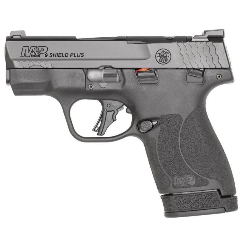 The M&P Shield Plus is extremely thin and lightweight and can be comfortably carried all day. It features the M&P's patented take-down lever and sear deactivation systems all for disassembly without pulling the trigger; flat face trigger is for consistent trigger finger placement which allows for more accurate and repeatable shooting; enhanced grip texture allows the user to manage recoil, keep a firm grip and delivers comfort when concealing; optic cut slide; 18-degree grip angle for natural point of aim and Armornite durable corrosion resistant finish. Extended magazine offers 13+1 round capacity. Includes two magazines.