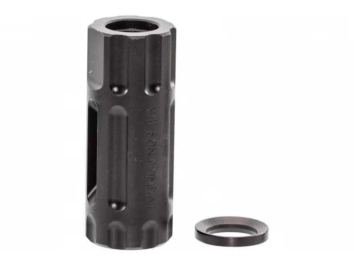 The Wilson Combat Q-Comp has been designed to greatly enhance recoil control in rapid fire without the harsh blast and flash that other AR-15 muzzle devices exhibit. The Q-Comp is a hybrid AR-15 brake/compensator that has been tuned to minimize side-blast and concussion compared to other muzzle devices on the market. The slotted expansion chamber design of the Q-Comp has no prongs or tines to break off or snag and is Melonite QPQ coated alloy steel for maximum durability and corrosion resistance. It is easily installed on your AR rifle using the included crush washer.