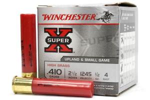 Winchester 410GA, 2.50″, 1/2oz, #4, Super X Heavy Game Load High Brass, 25RDS